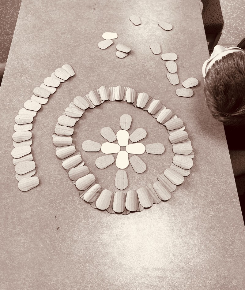 Après cette mise en jambe un peu physique, nous invitons les jeunes Paulhaguettois à composer avec des tuiles prédécoupées une maquette des installations.