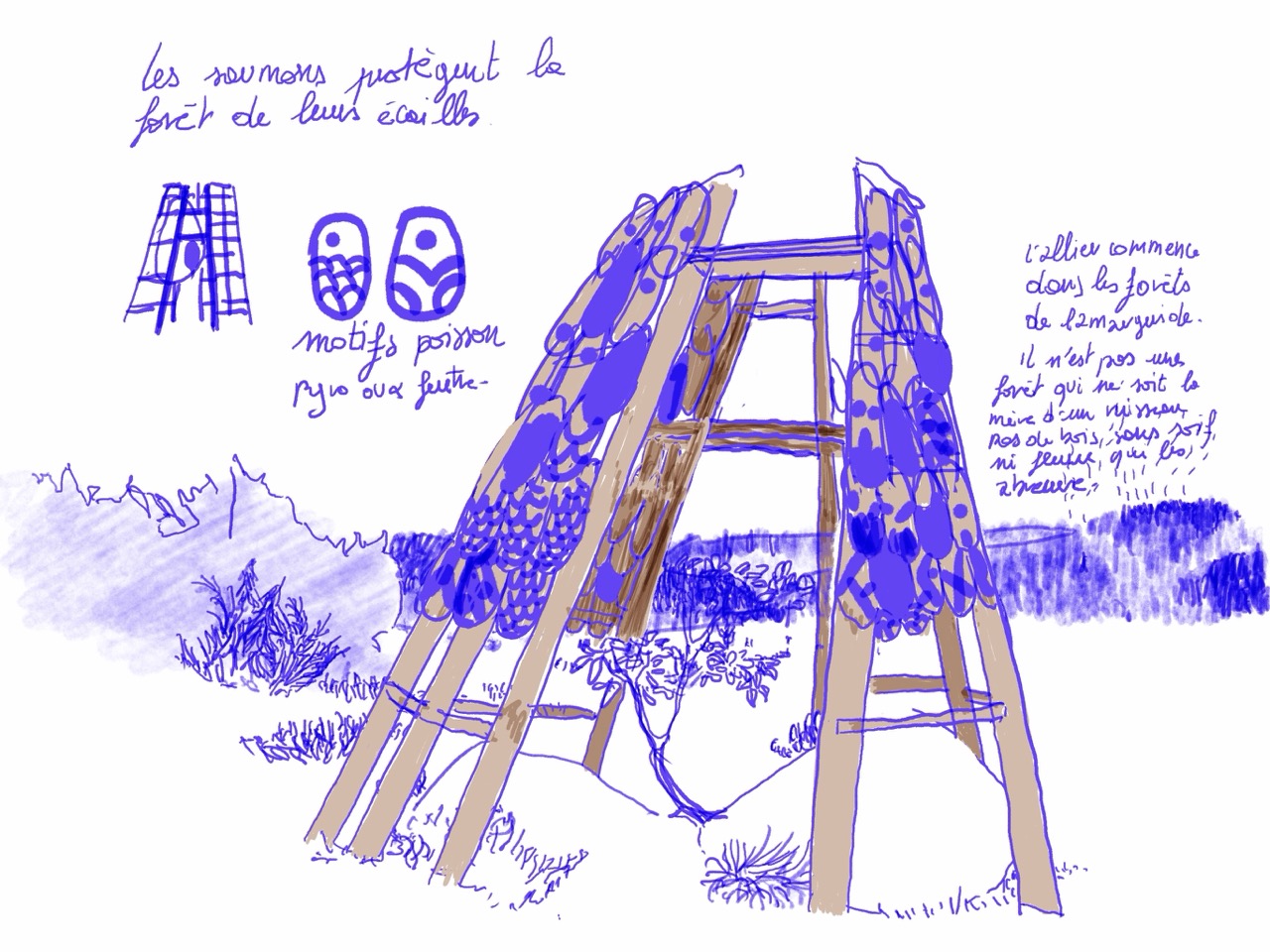 En ce qui nous concerne, les repaires embrassent ces deux fonctions. Ils sont à la fois des objets que l’on repère et ils peuvent servir d’abris à des humains et à d’autres qu’humains. Ils incarnent différents rapport à l’eau de l’Allier et à leurs habitant.es riverain.es ou aquatiques.
